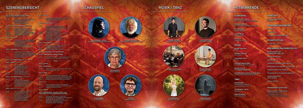 Die seit Jahrzehnten an der Stiftskirche Enger wirkende Organistin und Künstlerin Kumiko Ogawa-Müller hat dieses Werk zum 80. Jahrestag der Vereinten Nationen geschaffen. In ihm wird durch das Zusammenwirken von Musik, Sprache, Bewegung und Bild ein Dialog zweier Kulturen erlebbar.