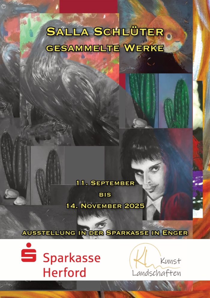Die Künstlerin Sabine Schlüter stellt einen Auszug ihrer gesammelten Werke vor. Die farbenfrohe Gestaltung ihrer Motive reicht von strahlendgrau bis düsterbunt.